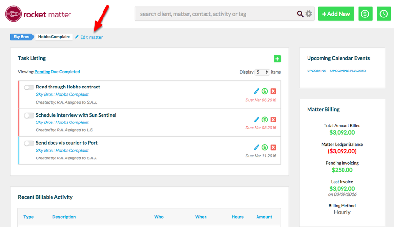1. Navigate to the Matter and select 'Edit matter'.