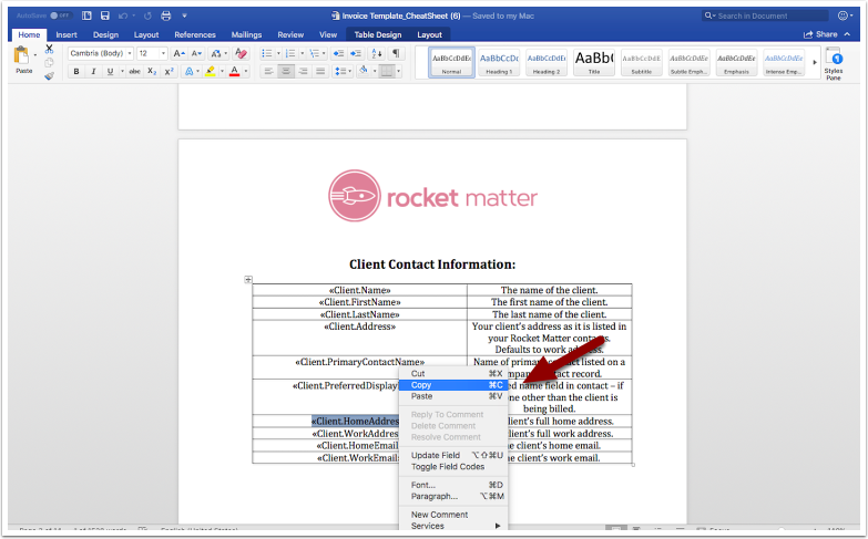 8. After pasting the merge field, 'right-click' the clipboard icon and click on 'Match Destination Formatting'.