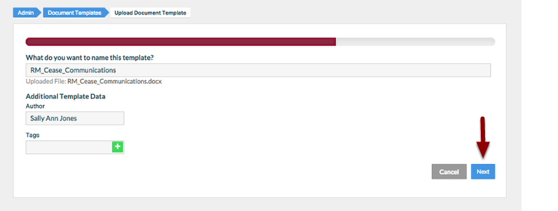 13. Name the template. Choose an 'Author' and add 'Tags', if you use Tags. Click 'Next' to save.