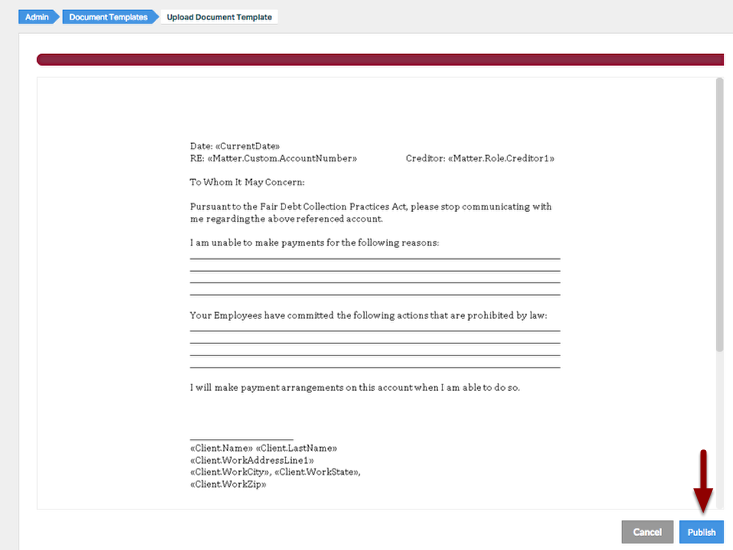Document Templates are used to create custom documents in Rocket Matter. Templates are created as Word documents and populated with either standard or custom Rocket Matter 'document merge fields'. A list of 'document merge fields' can be downloaded from the 'Tools' section.