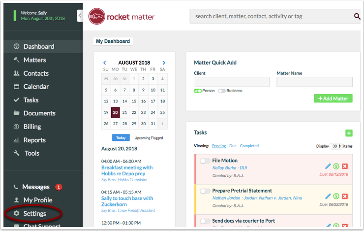 1. Select 'Settings' from the left-hand navigation panel.
