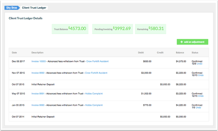 - Remaining trust: This amount reflects the amount of money left over, if any, after applying available trust funds to any pending invoicing amounts.