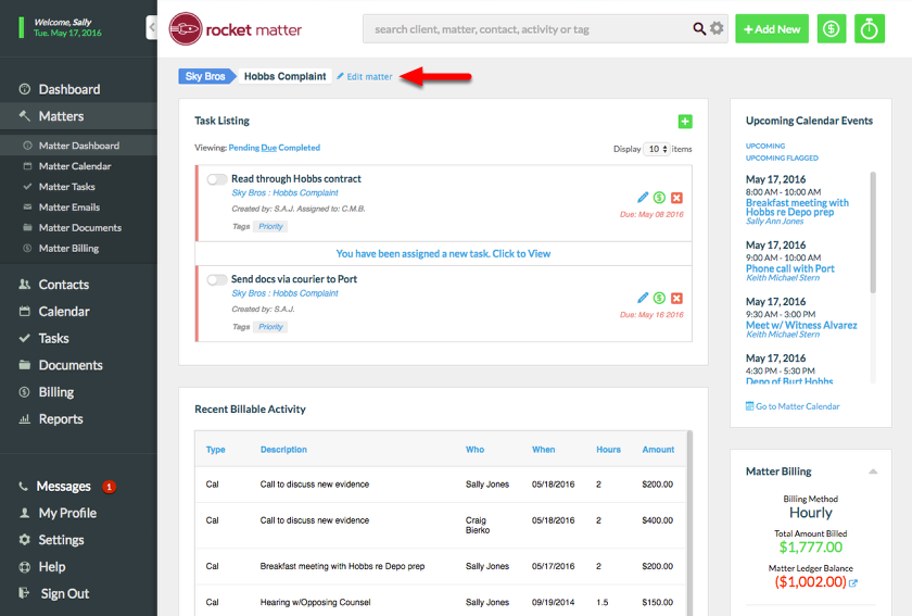 1. Navigate to the Matter you want to apply Tax to, and select 'Edit Matter'.