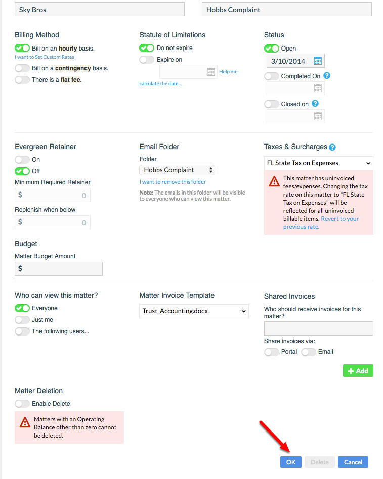 5. Click 'Save Matter' to apply the Tax.