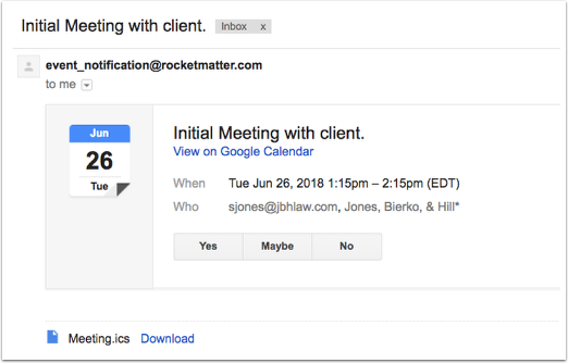If you are using calendar integration but have not enabled contact sync, make sure the Contact email address is the same in Rocket Matter and the alternate calendar currently syncing (Outlook, Google, etc.).